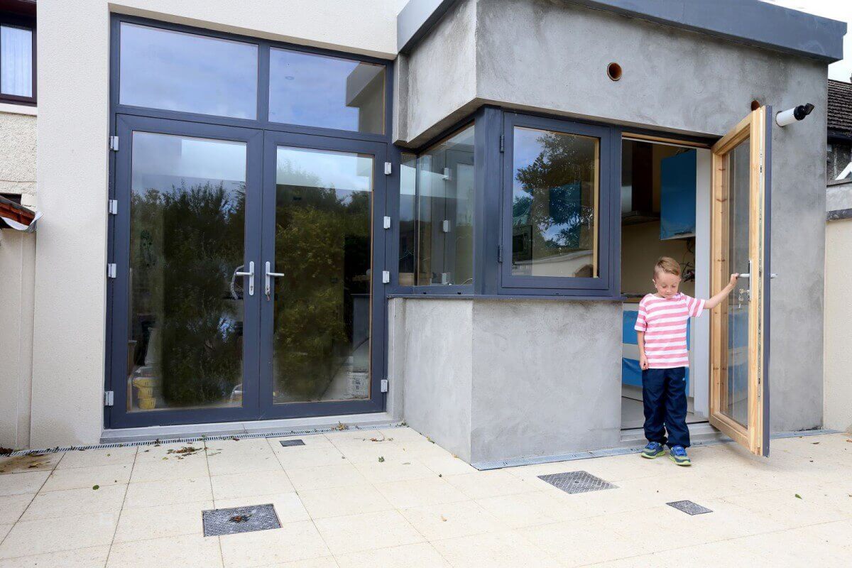 These Aluclad Windows and Doors were fitted into an extension in Malahide. This customer choose our Climatec Aluclad system for it's clean lines and it's superior strength and the fact we were able to do glass to glass corners. With a lead time of 4 weeks this fitted in with the builders schedule.