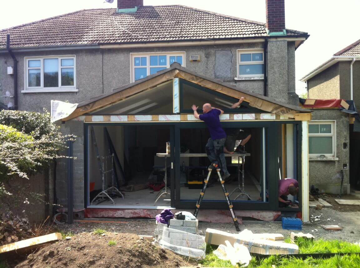 This week we installed another Aluclad Patio door with angled windows over head in a new extension in Glasnevin, Dublin. This is an excellent way to flood your home with natural sunlight. This option has become very popular with architects when designing new extensions. The climatec Patio door system is unique to D.L Windows as it was designed and manufactured here in Ireland to cope with the harsh Irish weather.
